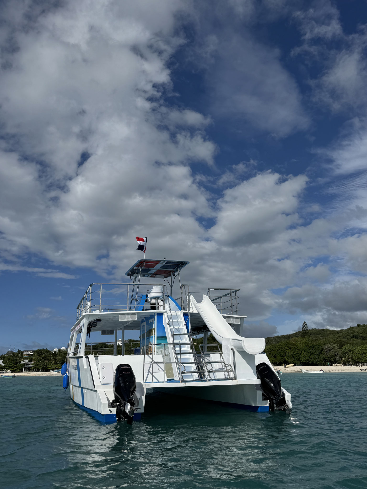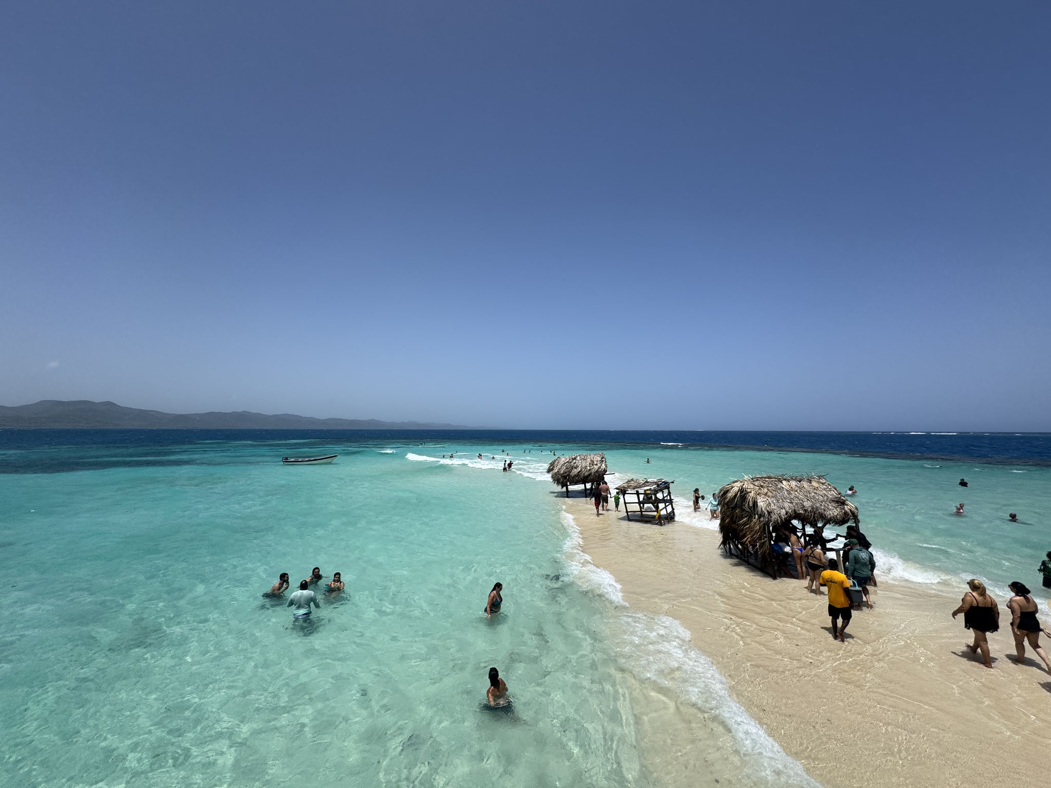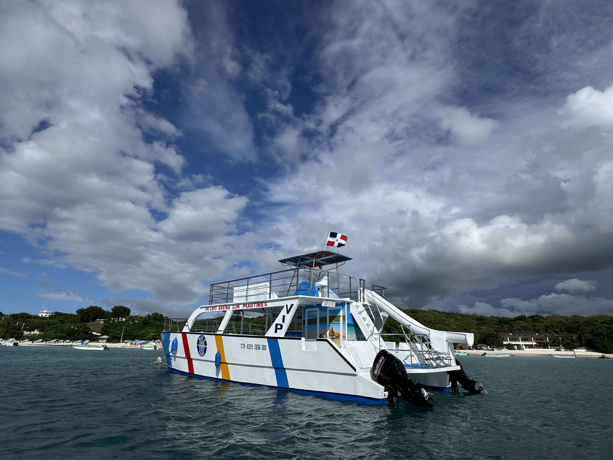 Die günstige Alternative, unsere Paradise Island Light Katamaran Tour. Wir starten schon sehr früh, um 7 Uhr in Cabarete, um 7.15 Uhr in Sosua und um 7.45 Uhr in Puerto Plata. Im klimatisierten Van geht es direkt zum Strand in Punta Rucia, den wir gegen 10 Uhr erreichen. Dort wechseln wir auf unser Katamaran und fahren direkt zur Paradise Island, vorher mit einem Stop am Natural Pool, zum Rutsch- und Badevergnügen. Hier könnt Ihr tolle Fotos schießen im kristallklaren, türkisblauen Wasser. Danach mindestens zwei Stunden Aufenthalt auf der Cayo Arena, auch als Paradise Island oder Isla Bonita bekannt, zum Schnorcheln und Abchillen, Danach machen wir uns auf den Weg zurück, nach Punta Rucia, entlang der Mangroven des Nationalparks Montecristi. Im Anschluss gibt es noch ein gemeinschaftliches, landestypisches Essen direkt am Strand. Wer möchte, kann hier noch weiterbaden. Später fahren wir Euch direkt in Eure Hotels zurück. Ankunft ca. 17-18 Uhr Uhr. Wer keine eigene Schnorchelausrüstung hat, wir haben welche dabei, ohne weitere Kosten. Wasser, Softdrinks und Cuba Libre, sowie frisches Obst auf der Sandbank sind selbstverständlich inklusive.
